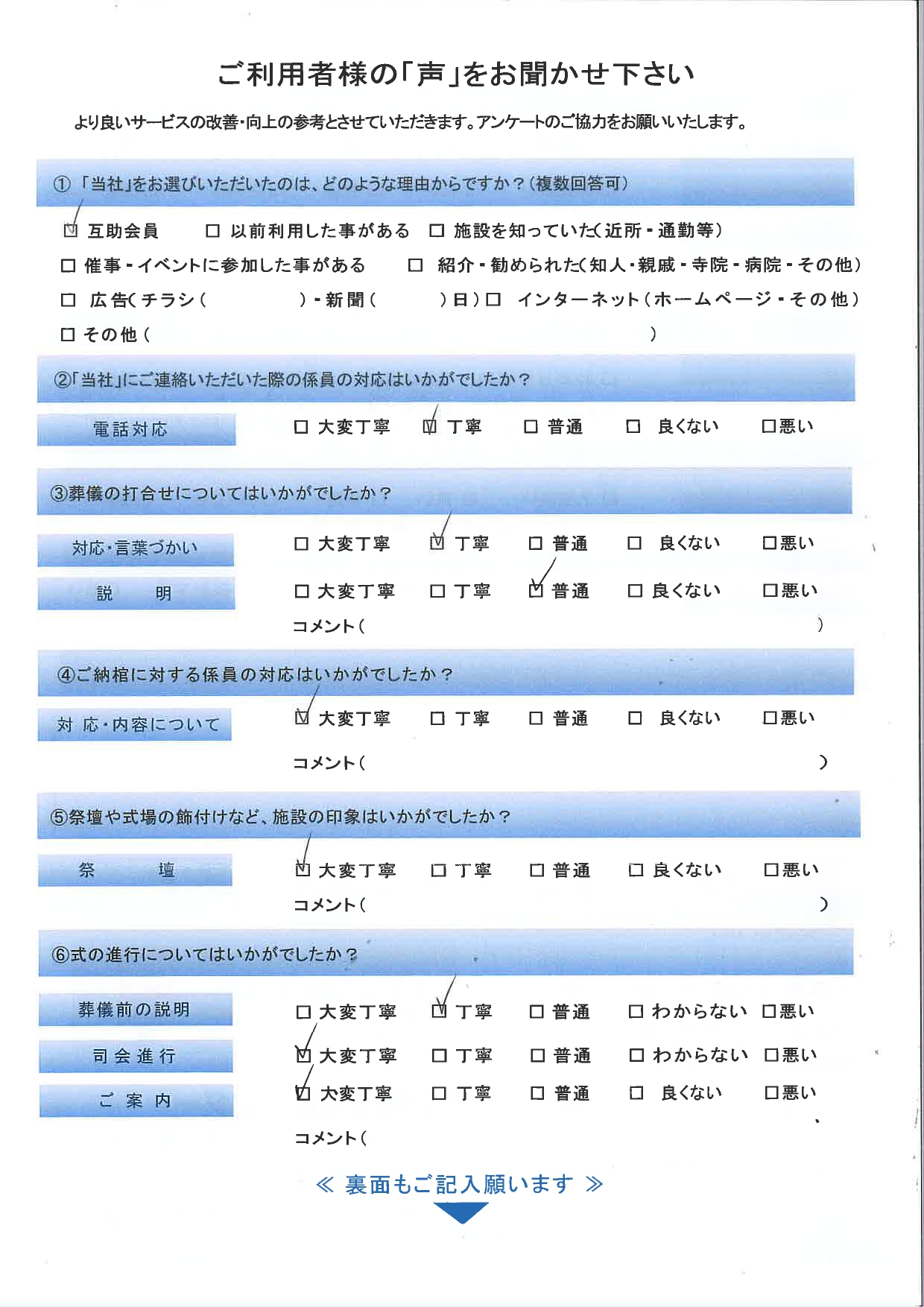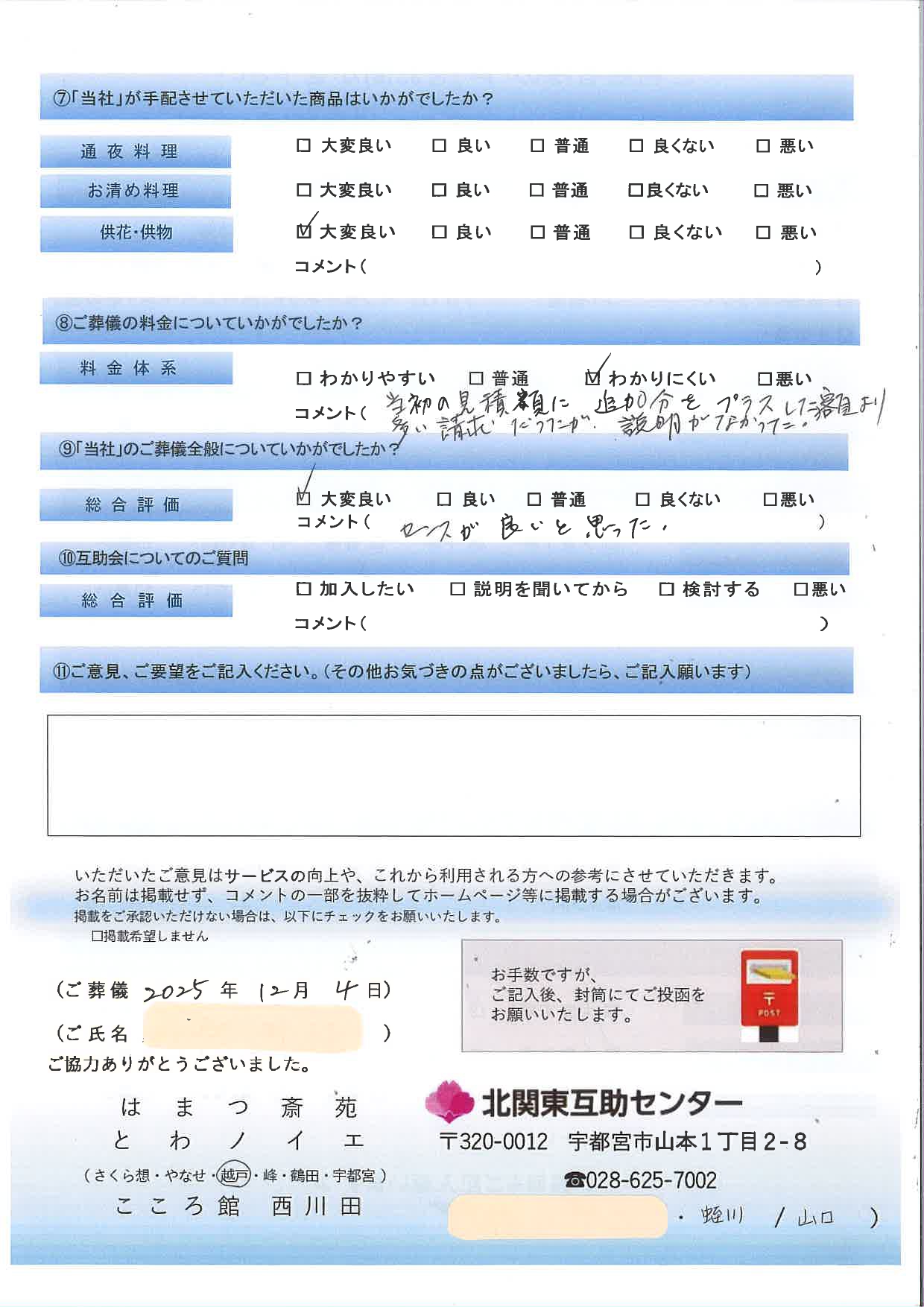これからも、一人ひとりの想いに寄り添いながら、誠心誠意お手伝いさせていただきます。この度は貴重なご意見をいただき、本当にありがとうございました。